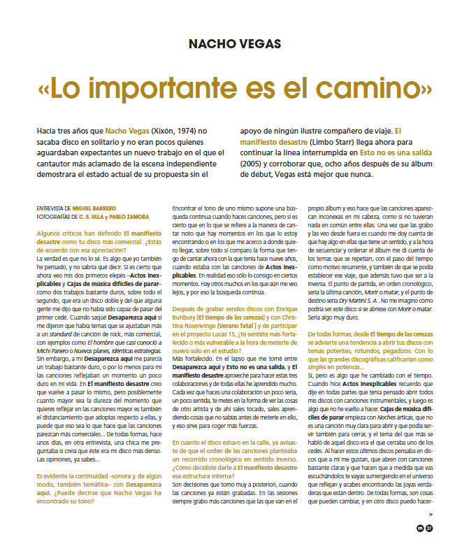 Me extrañó que algunos seguidores tuvieran ese tipo de dudas o sorpresas, pues en su cancionero abundan las referencias al comportamiento homosexual, a veces de forma explícita y otras de forma más o menos intuida. La distancia entre el autor Nacho González Vegas y las canciones de Nacho Vegas que la establezca cada cual, ya que el autor suele jugar al despiste, pero me parece interesante hablar de las canciones de Nacho Vegas desde este punto de vista.